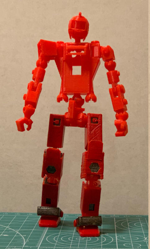 ただ、脚部分の可動域は骨格だけのときとそう変わらないほど確保できているのに比べて肩と肘はまだ干渉する部分があり次の改善ポイントです。